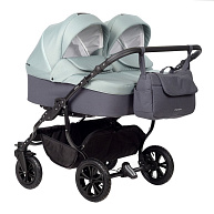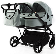 Детская коляска для двойни Adamex Leo Duo Deluxe 2 в 1 DUO-SA20 (СЕРО-ЗЕЛЁНАЯ КОЖА)