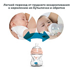 Nuvita Materno Feel - инновационная антиколиковая пластиковая бутылочка, которая облегчает чередование кормления грудью и из бутылочки, не нарушая привычку ребенка к естественному кормлению.