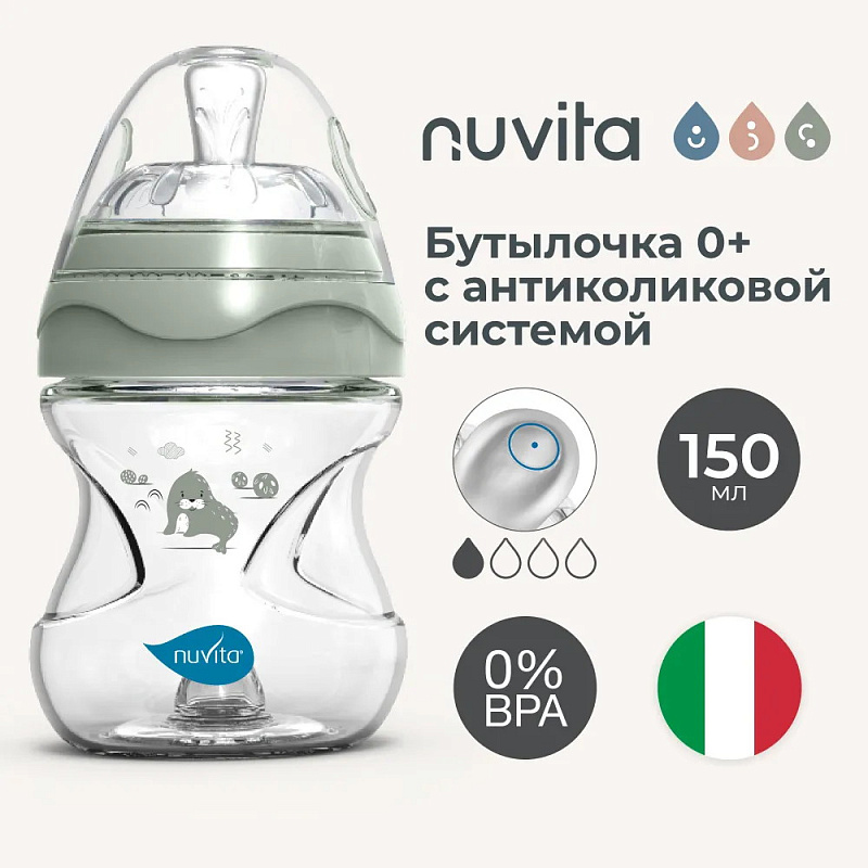 Антиколиковая бутылочка Nuvita 6011 Materno Feel 150мл серо-зеленый