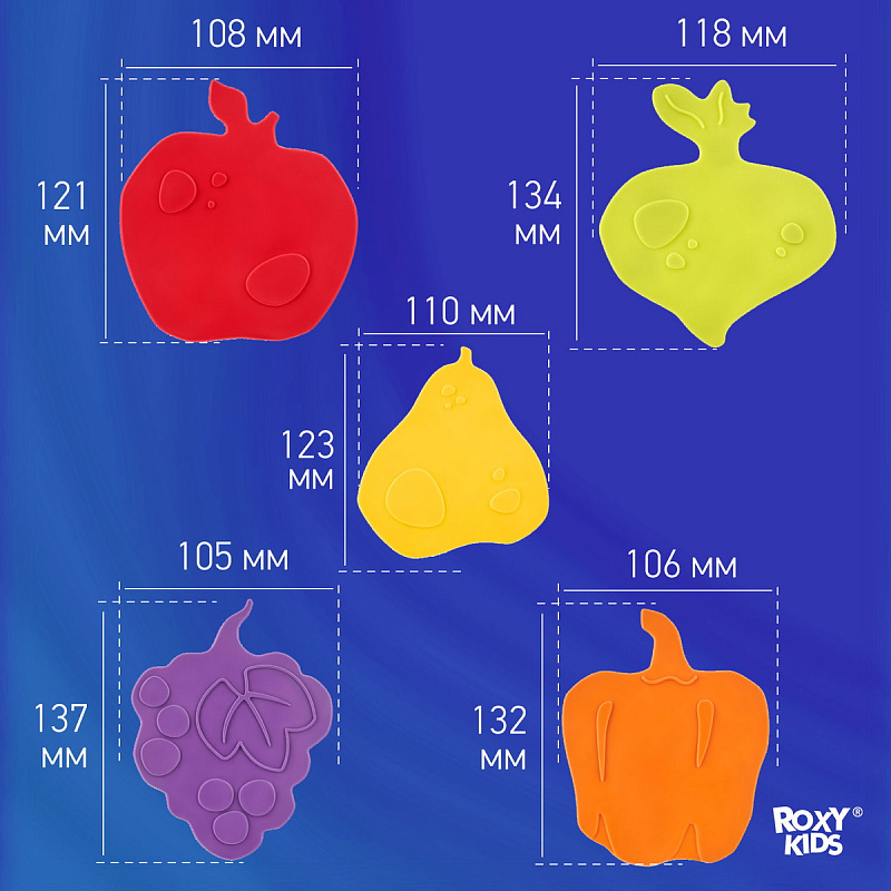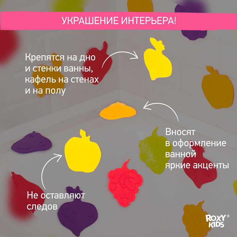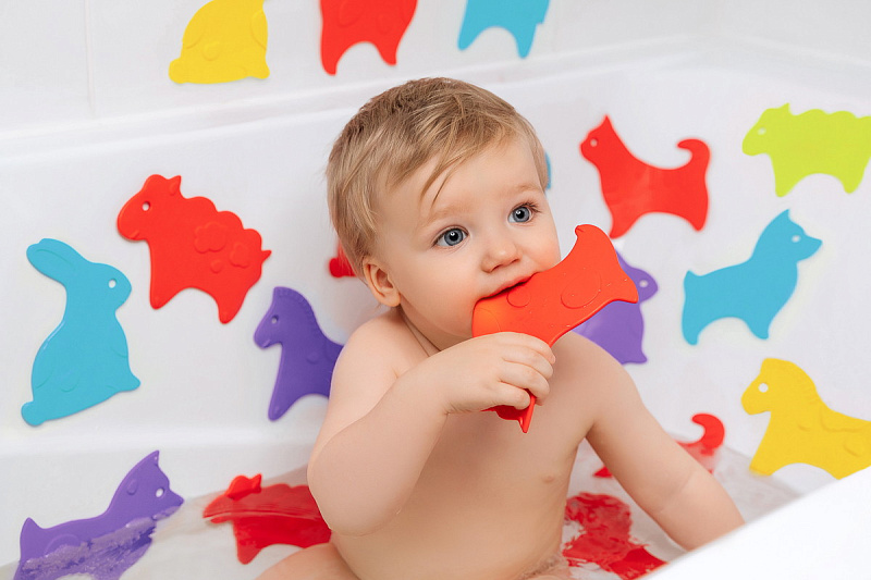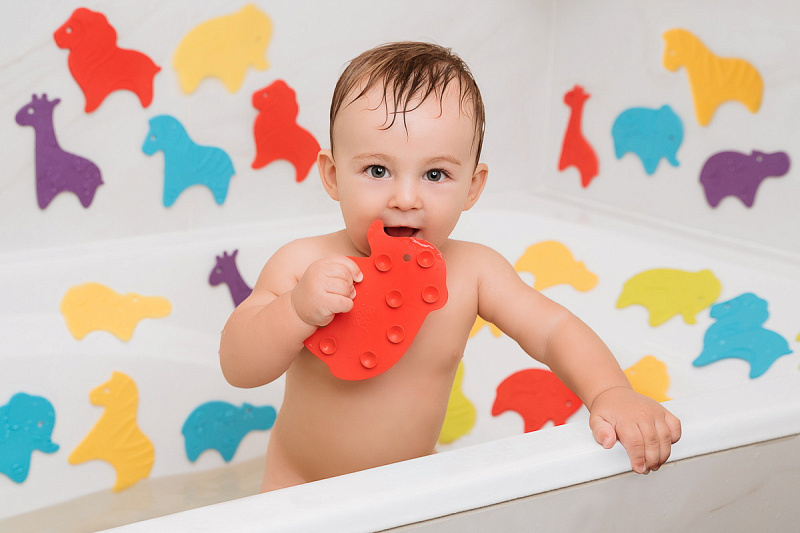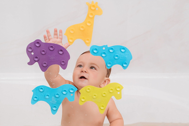 Мини коврики для ванной ANIMALS от ROXY-KIDS произведены в России из современного и безопасного материала ТЭП. Этим коврикам можно найти множество применений. Мини-коврики станут отличной заменой большому коврику, который неудобно промывать и сушить. Также их используют как массажеры, потому что рельефная поверхность обеспечивает бережный массаж стоп и ладоней. Ребенок может грызть их, потому что они изготовлены из специального безопасного материала. Ими можно также украсить интерьер, налепив коврики на дно и стенки ванны или кафель, чтобы не только обеспечить удобство, но и расставить яркие цветовые акценты. Кроме того, эти мини-коврики абсолютно не пахнут, потому что не содержат ПВХ. Для ухода их достаточно просто периодически промывать с мылом, полоскать и хорошо сушить. Они легко и надежно крепятся с помощью присосок на любую гладкую поверхность, при этом не оставляют следов. В ассортименте есть несколько наборов ковриков.