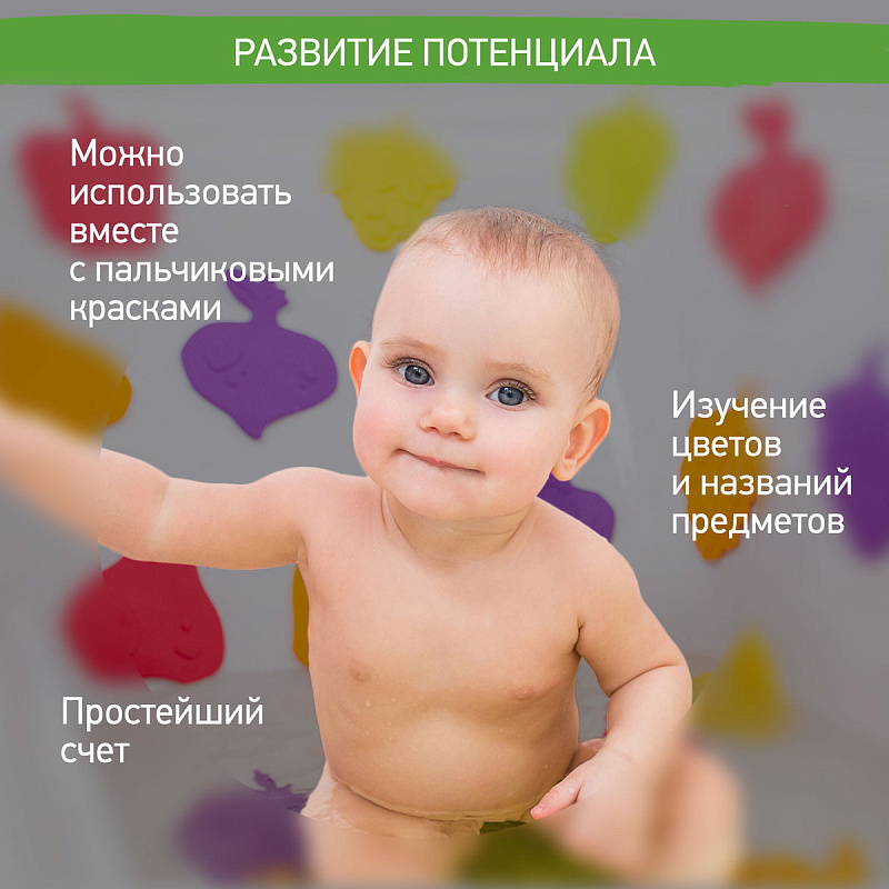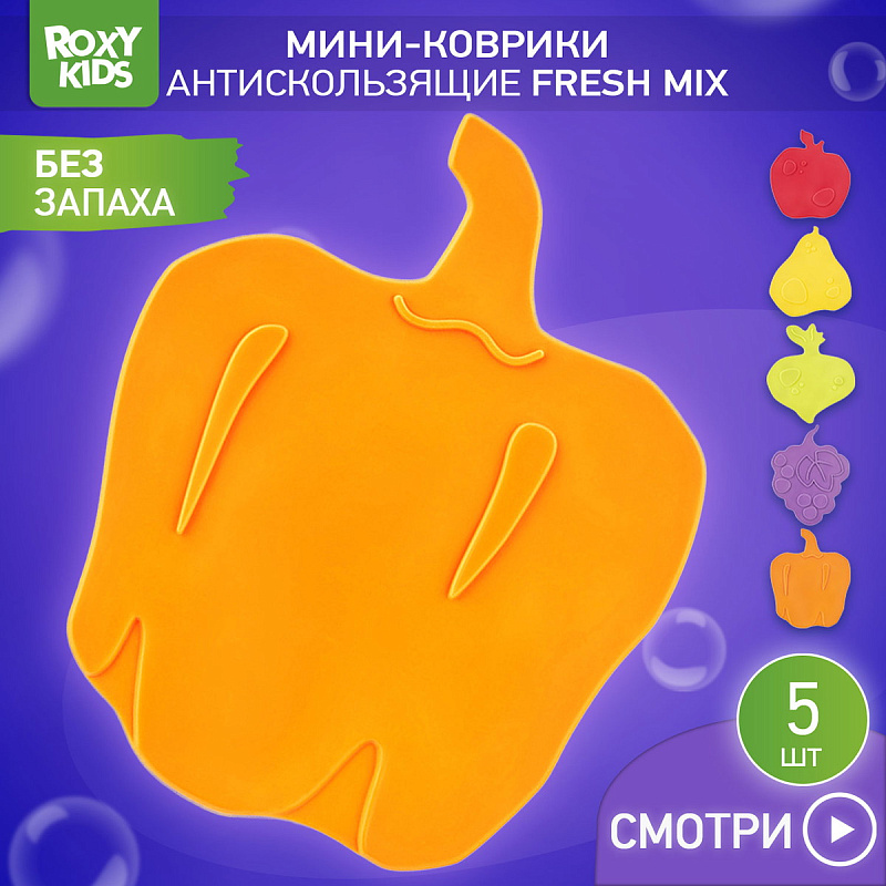 Мини-коврики для ванной от ROXY-KIDS произведены в России из современного и безопасного материала ТЭП. Этим коврикам можно найти множество применений. Мини-коврики станут отличной заменой большому коврику, который неудобно промывать и сушить. Также их используют как массажеры, потому что рельефная поверхность обеспечивает бережный массаж стоп и ладоней. Ребенок может грызть их, потому что они изготовлены из специального безопасного материала. Ими можно также украсить интерьер, налепив коврики на дно и стенки ванны или кафель, чтобы не только обеспечить удобство, но и расставить яркие цветовые акценты. Кроме того, эти мини-коврики абсолютно не пахнут, потому что не содержат ПВХ. Для ухода их достаточно просто периодически промывать с мылом, полоскать и хорошо сушить. Они легко и надежно крепятся с помощью присосок на любую гладкую поверхность, при этом не оставляют следов. В ассортименте есть несколько наборов ковриков.