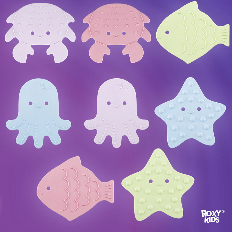 Антискользящие мини-коврики Roxy-Kids Sea Animals 8 шт RBM-008-SA пастель