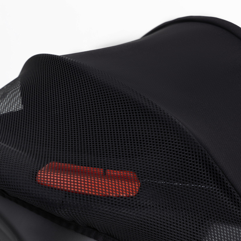 • Глубокий съемный капюшон с вентиляцией защитит ребенка от солнца и осколков стекла в случае ДТП