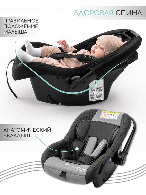 Автокресло переноска Baby comfort AMAROBABY устанавливается против хода движения и крепится внутренними ремнями безопасности автокресла. Вес 2,5 кг.