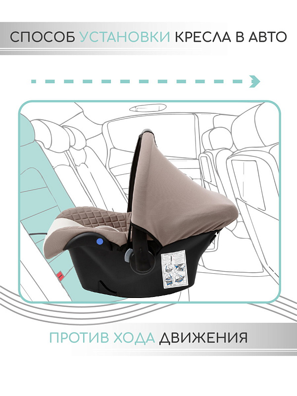 Автокресло переноска Baby comfort AMAROBABY устанавливается против хода движения и крепится внутренними ремнями безопасности автокресла. Вес 2,5 кг.