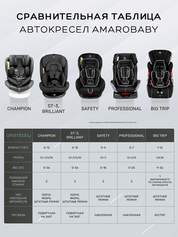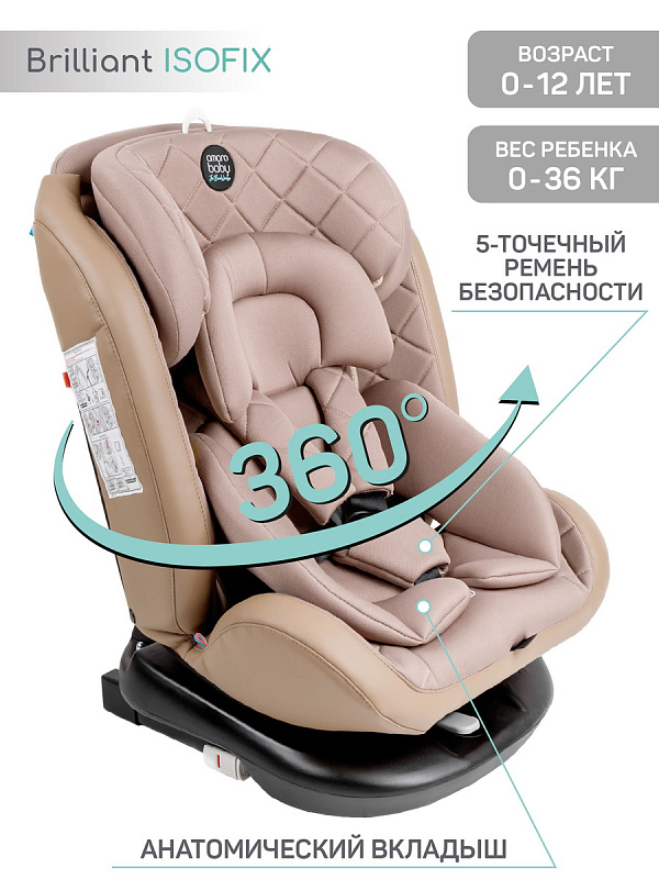 Детское автокресло Brilliant ISOFIX от бренда Amarobaby – уникальная модель автокресла, которая обеспечивает безопасное перемещение вашего ребенка в автомобиле с самого рождения до 12 лет. Универсальное автокресло сочетает в себе самые современные требования безопасности к перевозке, а его конструкция с легкостью модифицируется под требования каждой возрастной (весовой) группы 0+/1/2/3. По мере взросления ребенка спинка автокресла регулируется по высоте, наклон спинки устанавливается в сидячем положении, убирается анатомический вкладыш для детей до года, делая кресло широким и удобным для ребенка постарше.