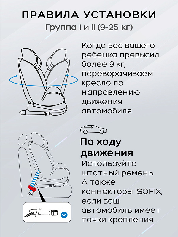- Регулируемая высота подголовника – возможность регулировки автокресла под рост ребенка.