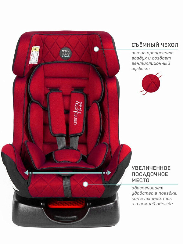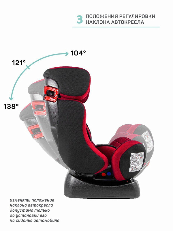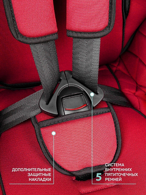 - 4 позиции регулировки ремней дает возможность адаптировать кресло под зимнюю и летнюю одежду ребенка, предупреждая чрезмерное давление, контролируя свободное пространство под ремнями