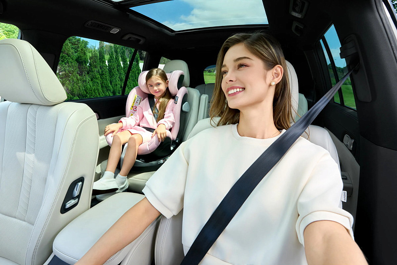 Широкая тазовая и плечевая зона с удлиненными 5-точечными ремнями безопасности для максимально комфортного путешествия ребенка.