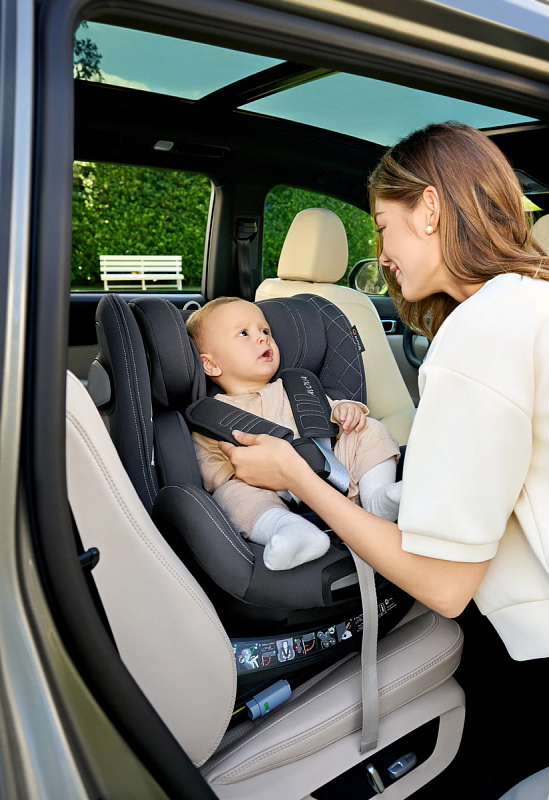 Инновационная функция поворота на 360° обеспечивает удобную установку и простоту ежедневного использования. Благодаря практичному повороту к двери автомобиля, посадка ребёнка в автомобиль и пристегивание ремнями безопасности становятся особенно простыми.