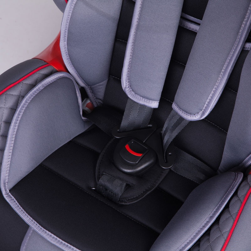 Надежный замковый механизм прочно удерживает малыша в кресле, не позволяя ему выскользнуть или выпасть.