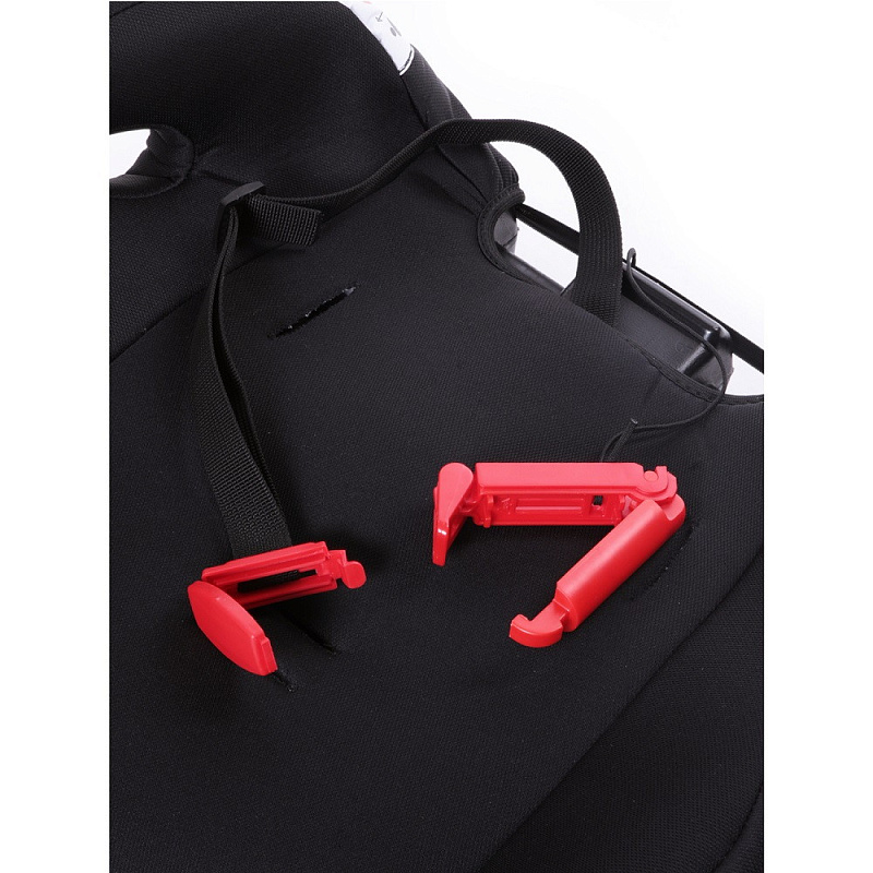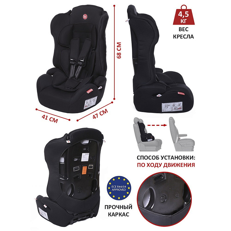- Конструкция оснащена фиксатором для регулировки прохождения диагонального ремня по плечу ребенка.