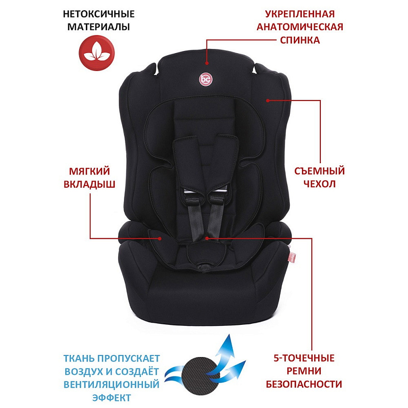 - Конструкция оснащена фиксатором для регулировки прохождения диагонального ремня по плечу ребенка.