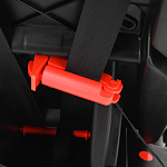 - Дополнительный комфорт и чувство безопасности карапузу гарантирует мягкий вкладыш и накладки на ремнях.