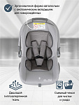 Мягкий подголовник, вкладыш под спину и накладки внутренних ремней повышают уровень комфорта ребенка во время поездки. Внутренние ремни безопасности регулируются по высоте и позволяют адаптировать кресло под рост ребенка, а также под зимнюю и летнюю одежду. Съемный капюшон защищает малыша от солнца. А удобная ручка позволяет без лишних усилий переносить люльку. Чехол изготовлен из качественного износостойкого и гипоаллергенного материала и подходит для машинной стирки.