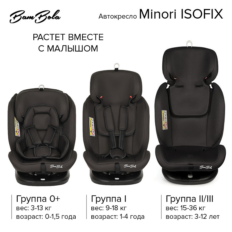 Автокресло BAMBOLA «MINORI ISOFIX» - универсальная модель, которая трансформируется под несколько весовых групп: