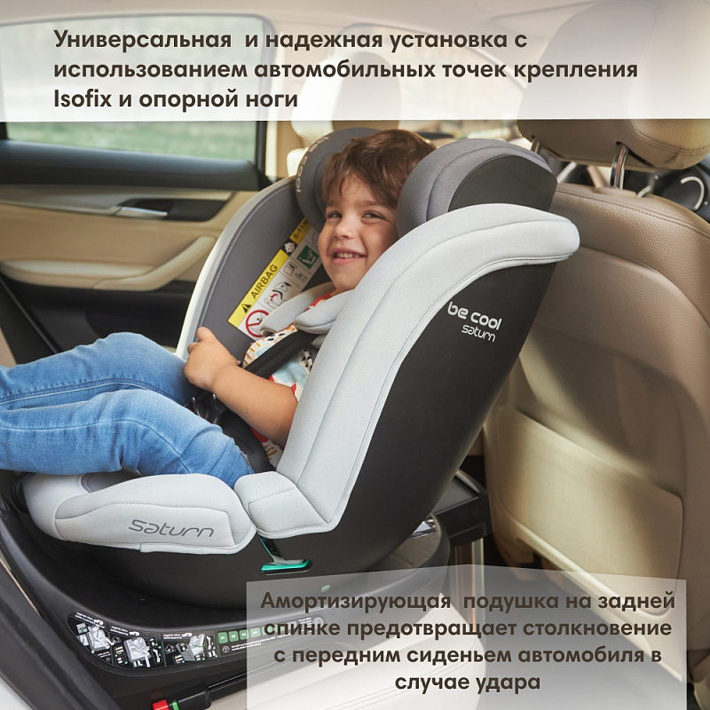 С автокреслом SATURN I-Size вам больше не придется беспокоиться о безопасности ребенка в автомобиле, так как автокресло можно использовать с рождения и до 150 см (приблизительно до 12 лет). Автокресло устанавливается с помощью системы isofix и опорной ноги, а функция поворота на 360 ° позволяет легко посадить ребенка в машину.