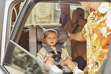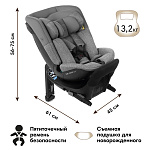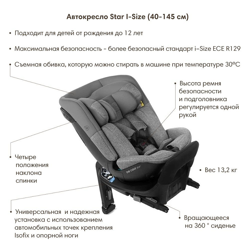 Автокресло соответствует европейским стандартам качества и безопасности. Оснащено регулируемым подголовником и откидывающейся спинкой. Мягкую обивку можно снять.