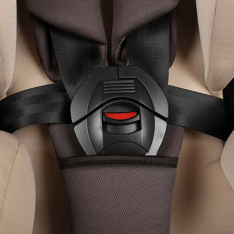 - Пятиточечный ремень безопасности с мягкими плечевыми накладкам, а также специальные мягкие вставки, которые защищают голову малыша, обеспечивают максимальный комфорт.