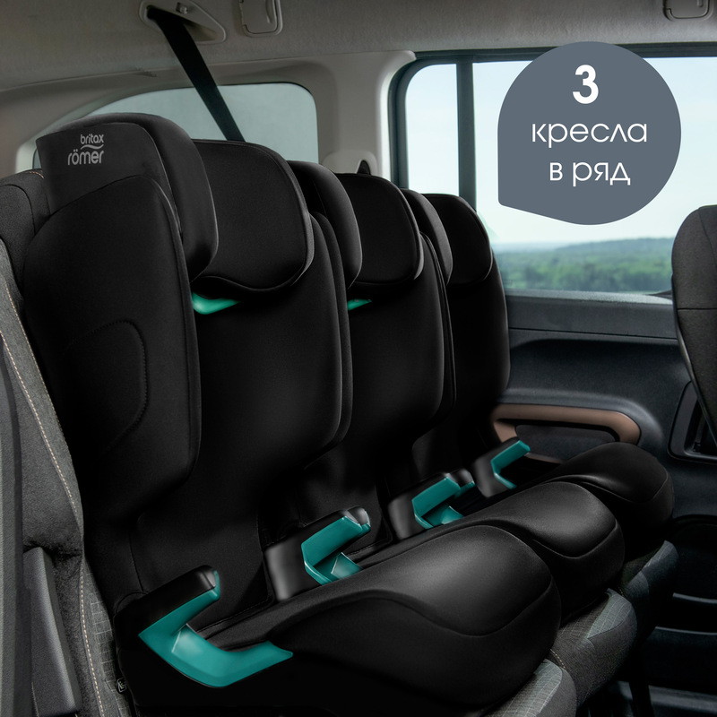 Компактная конструкция позволяет устанавливать сразу три автокресла на заднем сидении самых разных автомобилей.