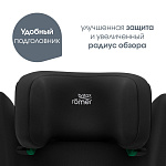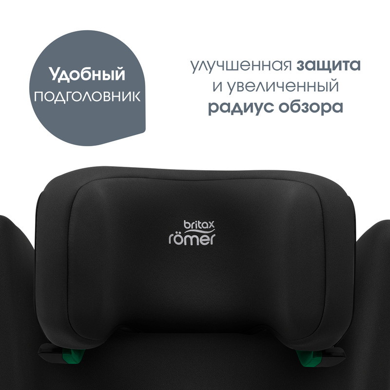 Подголовник разработан специально для подросших детей, его можно легко установить в необходимое положение. Конструкция обеспечивает улучшенную защиту от бокового удара и увеличенный радиус обзора для ребенка. Удобные отметки на задней части подголовника помогают родителям правильно подобрать нужную высоту.