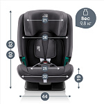 Это универсальное автокресло отличается идеальной безопасностью и соответствует самому новому европейскому стандарту i-SIZE. Технология SecureGuard помогает удерживать поясной ремень безопасности в оптимальном положении и снижает риск травм брюшной полости. Якорный ремень Top Tether минимизирует вращение автокресла, что снижает риск получения травм головы и шеи при столкновении.