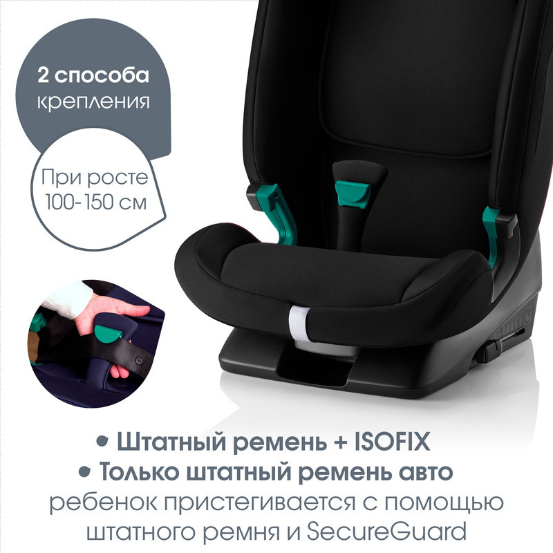 - Технология SecureGuard: точка крепления удерживает поясной ремень безопасности в оптимальном положении