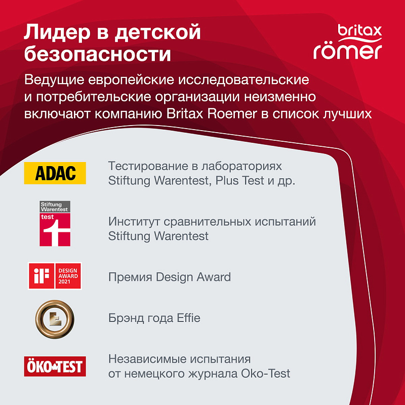 Трехуровневая защита ребенка за счет особенностей конструкции кресла