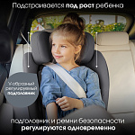 Оптимальная защита при боковом столкновении: V-образный подголовник с ударопоглощающими вставками специально разработан для того, чтобы ограничить движения головы вашего малыша. Регулировка подголовника осуществляется синхронно с ремнями безопасности, и по мере роста у ребёнка будет оставаться достаточно места в автокресле.
