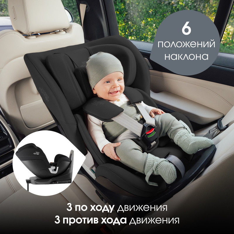 Независимо от того, путешествует ли ваш ребенок лицом по направлению движения или лицом против направления движения, в наклонном или вертикальном положении, вращение SWIVEL на 360° позволяет быстро посадить и высадить ребенка из автомобиля. Вы будете готовы к поездке за считанные секунды!