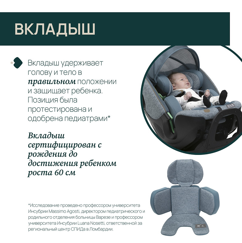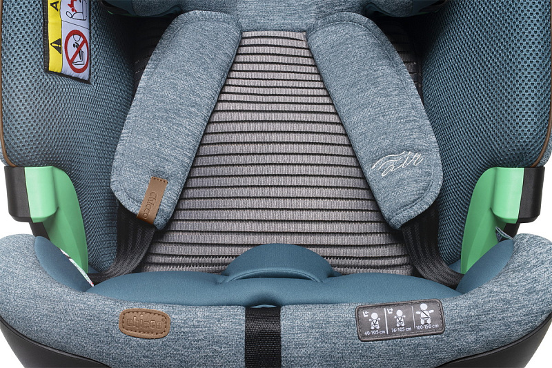 Для детей с рождения чаша кресла монтируется на базу ISOFIX Chicco Full 360 только в положении против хода движения, малыш при этом удерживается с помощью встроенных пятиточечных ремней безопасности с мягкими накладками.