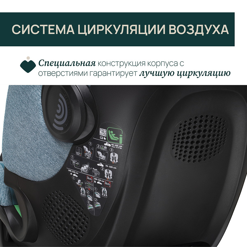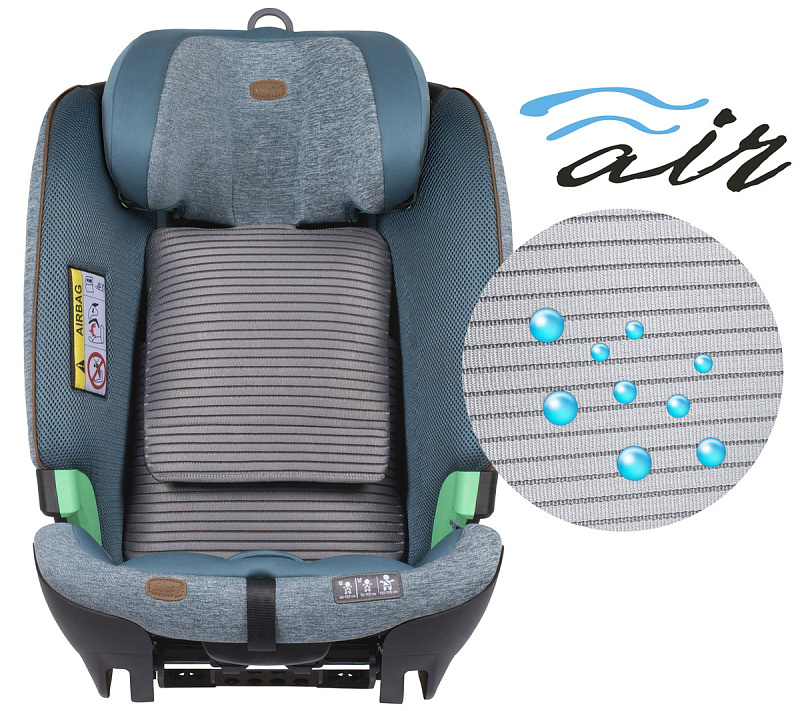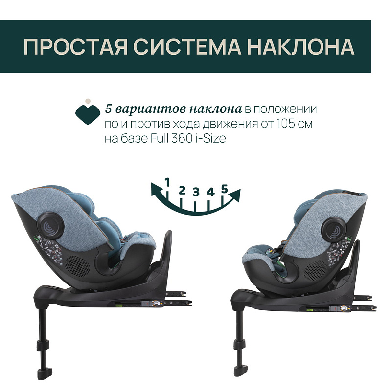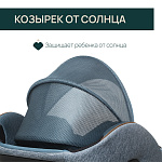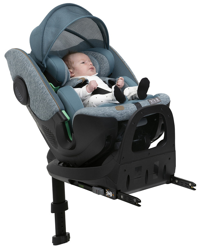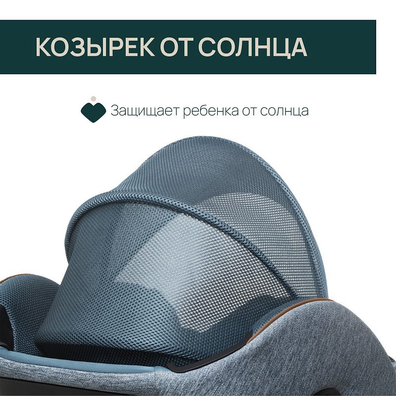 Кресло имеет 5 положений наклона при установке как против хода, так и по ходу движения. Для дополнительного комфорта предусмотрен встроенный воздухопроницаемый выдвижной козырек, защищающий от ультрафиолета.