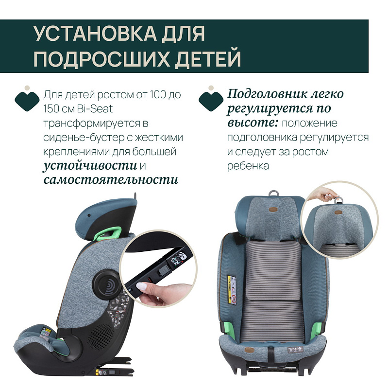 Универсально детское автокресло для всех возрастов Chicco Bi-Seat I-Size with Base Full 360 (Кикко Би-сит Айсайз с базой Фулл 360) представляет собой модульную конструкцию, включающую в себя полноценную отдельную базу изофикс Chicco Full 360 i-Size, которая может также использоваться с автолюлькой Chicco Kory, и устанавливаемую на нее чашу автокресла, которая имеет собственные встроенные крепления Isofix и в дальнейшем используется без платформы изофикс.