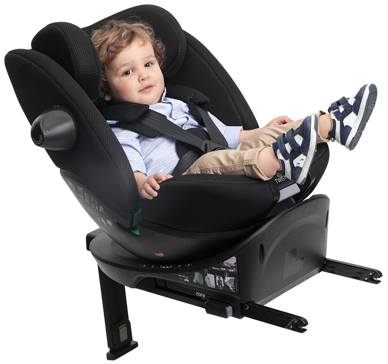 СИСТЕМА EASY-BOARDING: Поворот на 90° обеспечивает легкий доступ лицом к родителю для размещения ребенка, затем переключается в положение лицом назад или вперед.