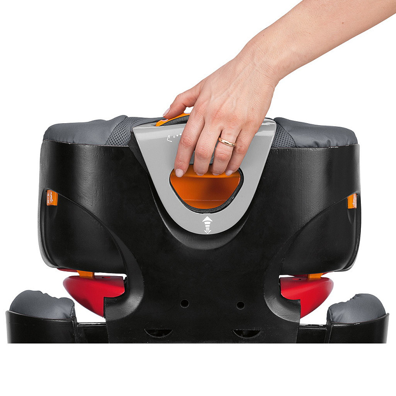 - Яркие оранжевые кнопки управления креслом не дадут ошибиться во время регулировки конструкции. Можно управлять автокреслом даже вслепую.