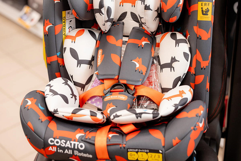 Кресло вращается на базе на 360 градусов. Эта функция позволяет комфортно развернуть кресло в автомобиле, усадить ребенка, зафиксировать кресло для движения «по» либо «против» хода автомобиля. All in all rotate растет вместе с малышом, его можно использовать с самого рождения до 12 лет (36 кг). Для новорожденных предусмотрены специальные анатомически правильные вкладыши.