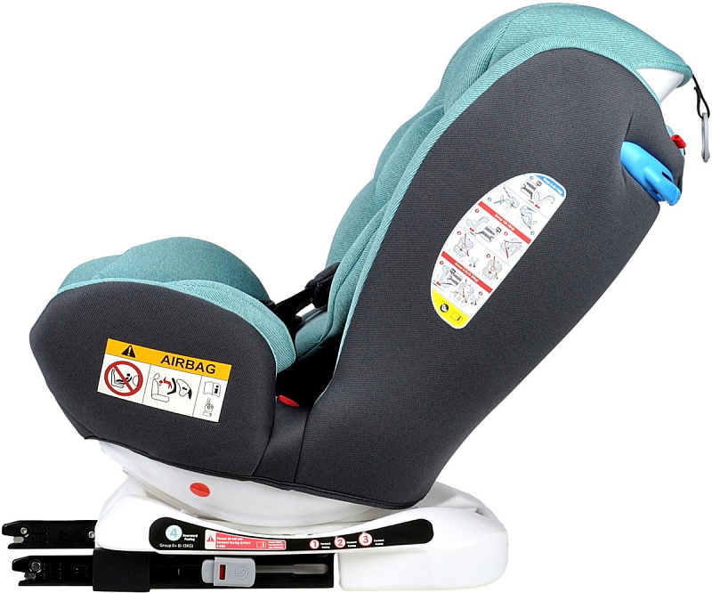 Крепится в автомобиле с помощью системы IsoFix или штатных ремней безопасности и устанавливается по ходу движения автомобиля и против него, в зависимости от веса и возраста ребёнка.