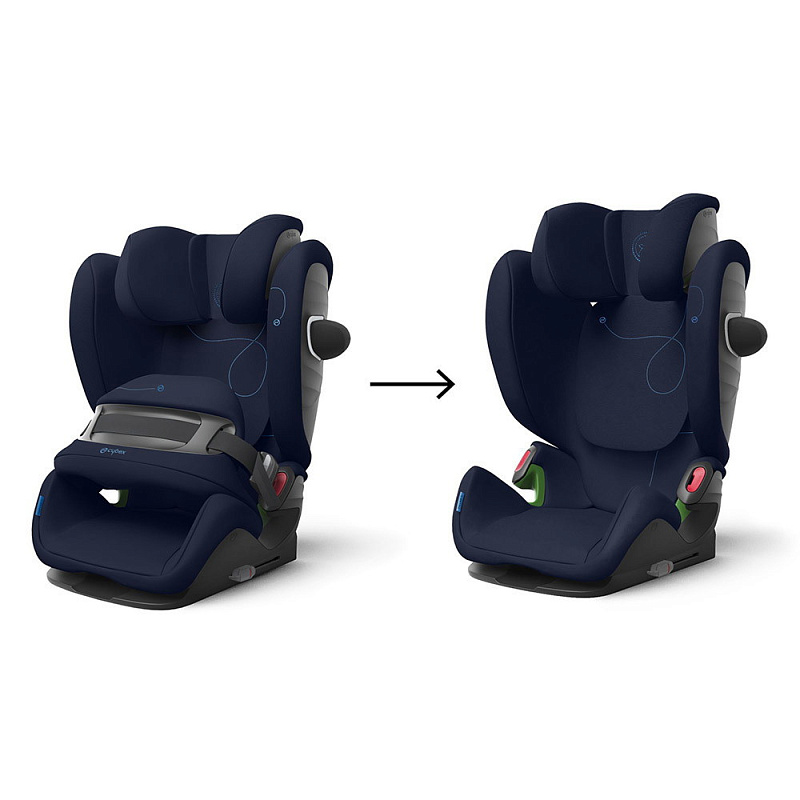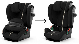 Чтобы переключить Pallas G i-Size на конфигурацию с 3-точечным автомобильным ремнем, вам нужно всего лишь снять противоударный щиток. Затем ребенок пристегивается трехточечным ремнем автомобиля. Вы можете переоборудовать Pallas G i-Size после того, как рост вашего ребенка превысит 100 см. Однако это не является обязательным, и вы можете продолжать использовать автокресло Pallas с противоударным щитком, пока ваш ребенок не достигнет роста 105 см. Однако обязательно снимите противоударный щиток, как только ребенок достигнет веса 21 кг.