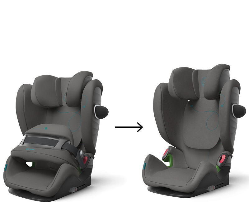 Чтобы переключить Pallas G i-Size на конфигурацию с 3-точечным автомобильным ремнем, вам нужно всего лишь снять противоударный щиток. Затем ребенок пристегивается трехточечным ремнем автомобиля. Вы можете переоборудовать Pallas G i-Size после того, как рост вашего ребенка превысит 100 см. Однако это не является обязательным, и вы можете продолжать использовать автокресло Pallas с противоударным щитком, пока ваш ребенок не достигнет роста 105 см. Однако обязательно снимите противоударный щиток, как только ребенок достигнет веса 21 кг.