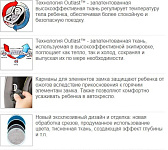 Технология Outlast - запатентованная ткань, регулирует поглощение тепла и холода, обеспечивая оптимальную температуру тела ребенка.