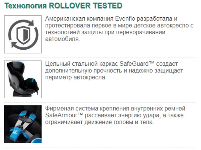 Технология Rollover Tested - технология защиты при переворачивании автомобиля.