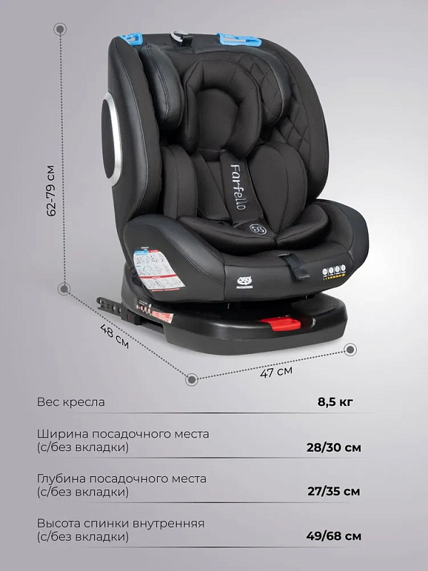 - чехол кресла выполнен из качественных и износостойких материалов, не требующих усилий в уходе – кресло можно протереть влажной салфеткой в салоне авто или снять чехол, и постирать в стиральной машине при 30 градусах