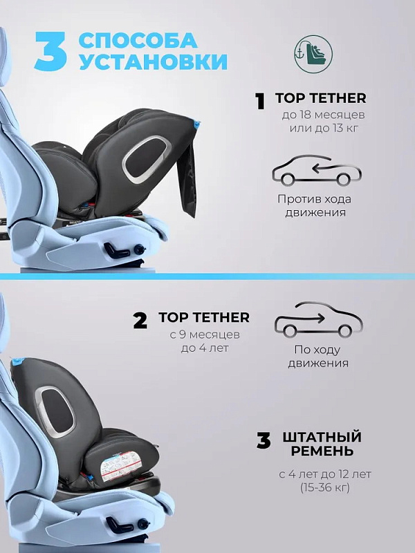 Автокресло оснащено системой крепления isofix, включающей в себя два нижних крепления и якорный ремень, которые обеспечивают надежную установку в автомобиле. Кресла с данной системой прошли испытания и показали наилучшие результаты по безопасности.