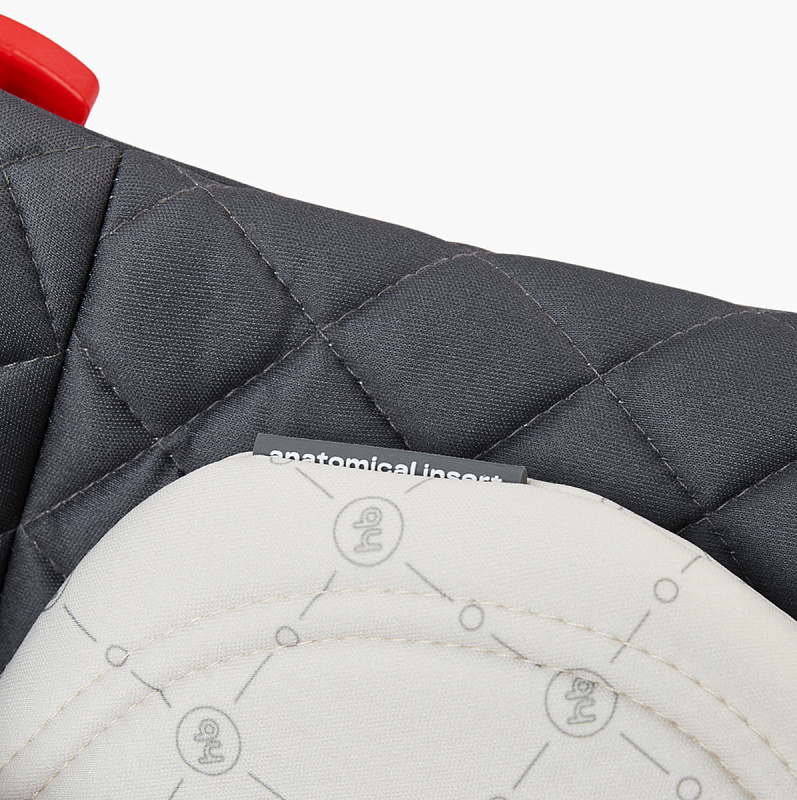 - Прочные 3-точечные ремни с накладками на плечики обеспечивают надежную фиксацию и безопасность во время езды.