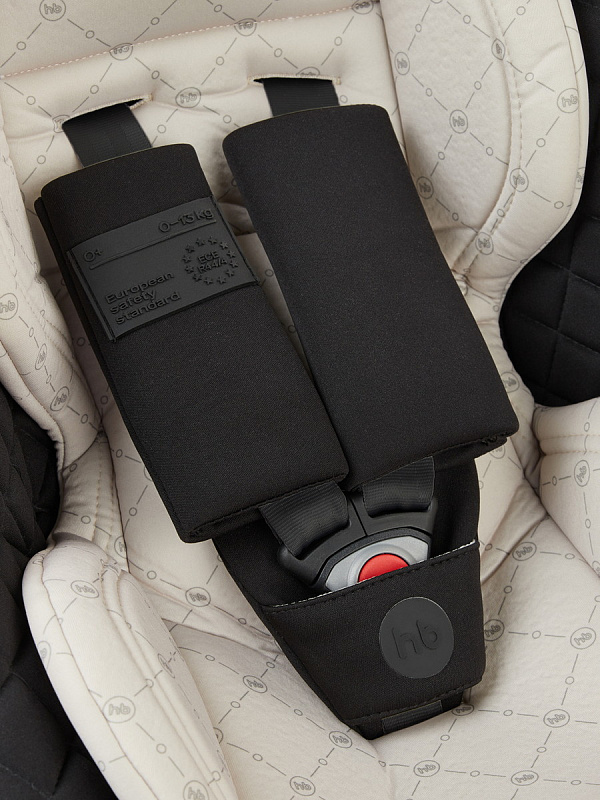 - Прочные 3-точечные ремни с накладками на плечики обеспечивают надежную фиксацию и безопасность во время езды.