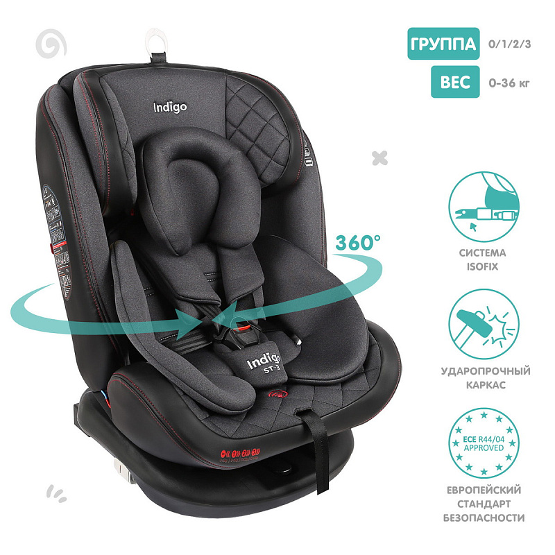 Автокресло Indigo Aero Isofix черный/красный