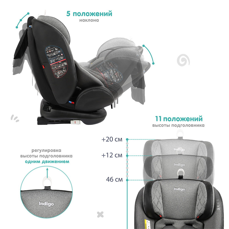 Автокресло Indigo Aero Isofix серый