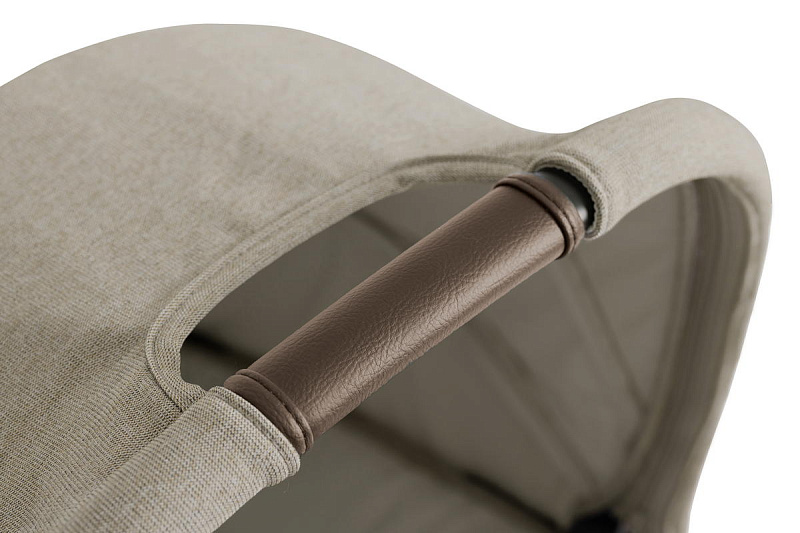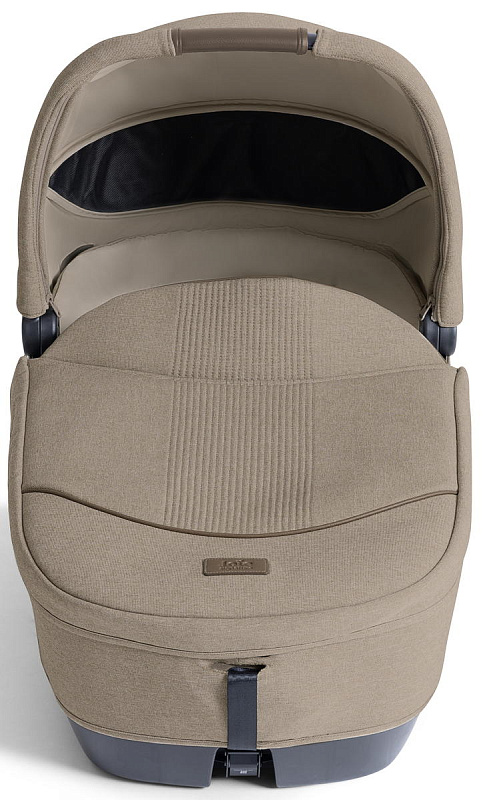 Люлька оснащена легкодоступными боковыми кнопками для ее снятия, вкладышем для головы и тела малыша для дополнительной поддержки и удобными трехточечными ремнями безопасности с мягкими накладками, регулируемыми одним движением. Карманы для хранения мелочей размещены как внутри, так и снаружи удерживающей системы. Ручка для переноски может настраиваться в 3 положениях, а верхняя накидка съёмная.