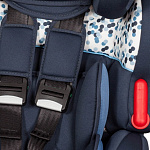 - Непоседа надежно фиксируется в сидении 5-точечными регулируемыми ремнями безопасности с мягкими плечевыми накладками.