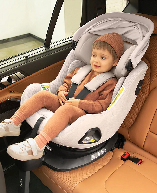 Кнопка поворота кресла на 360° позволит развернуть кресло максимально удобно при размещении в нем малыша, а магнитные держатели пряжек удерживают ремни «в стороне», не давая им запутаться.